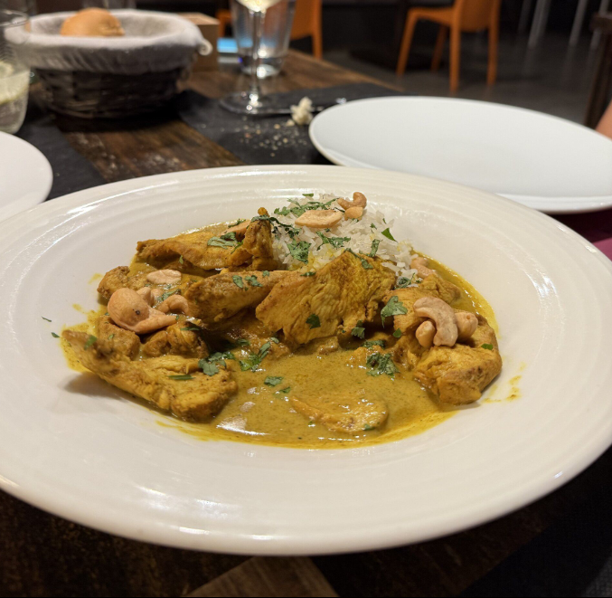 pollo badami con cacahuetes y arroz