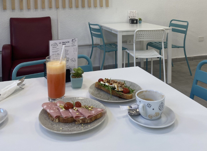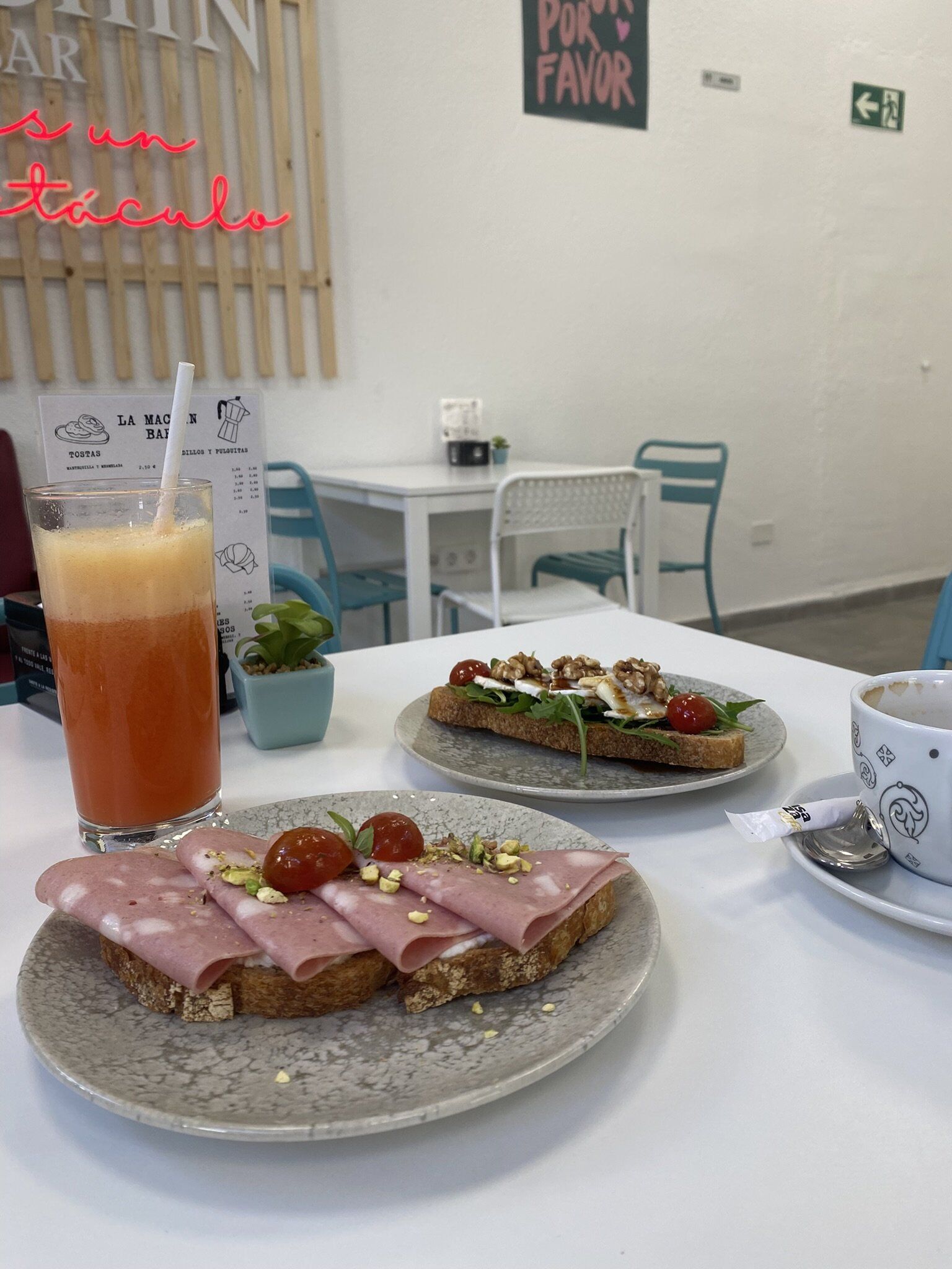 tosta de mortadela, ricota, pistachos y tomate cherry
