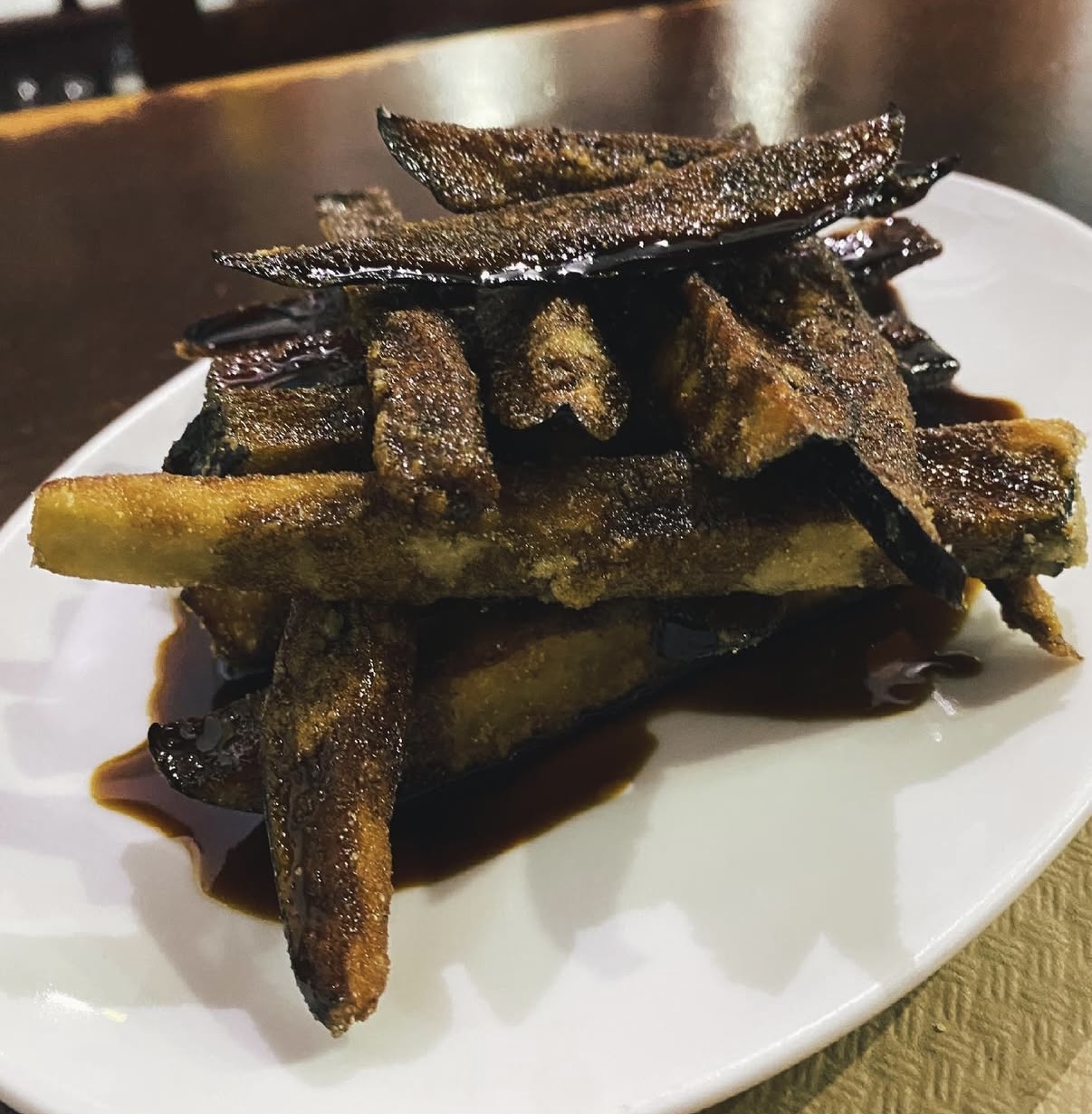 berenjenas rebozadas con miel de palma