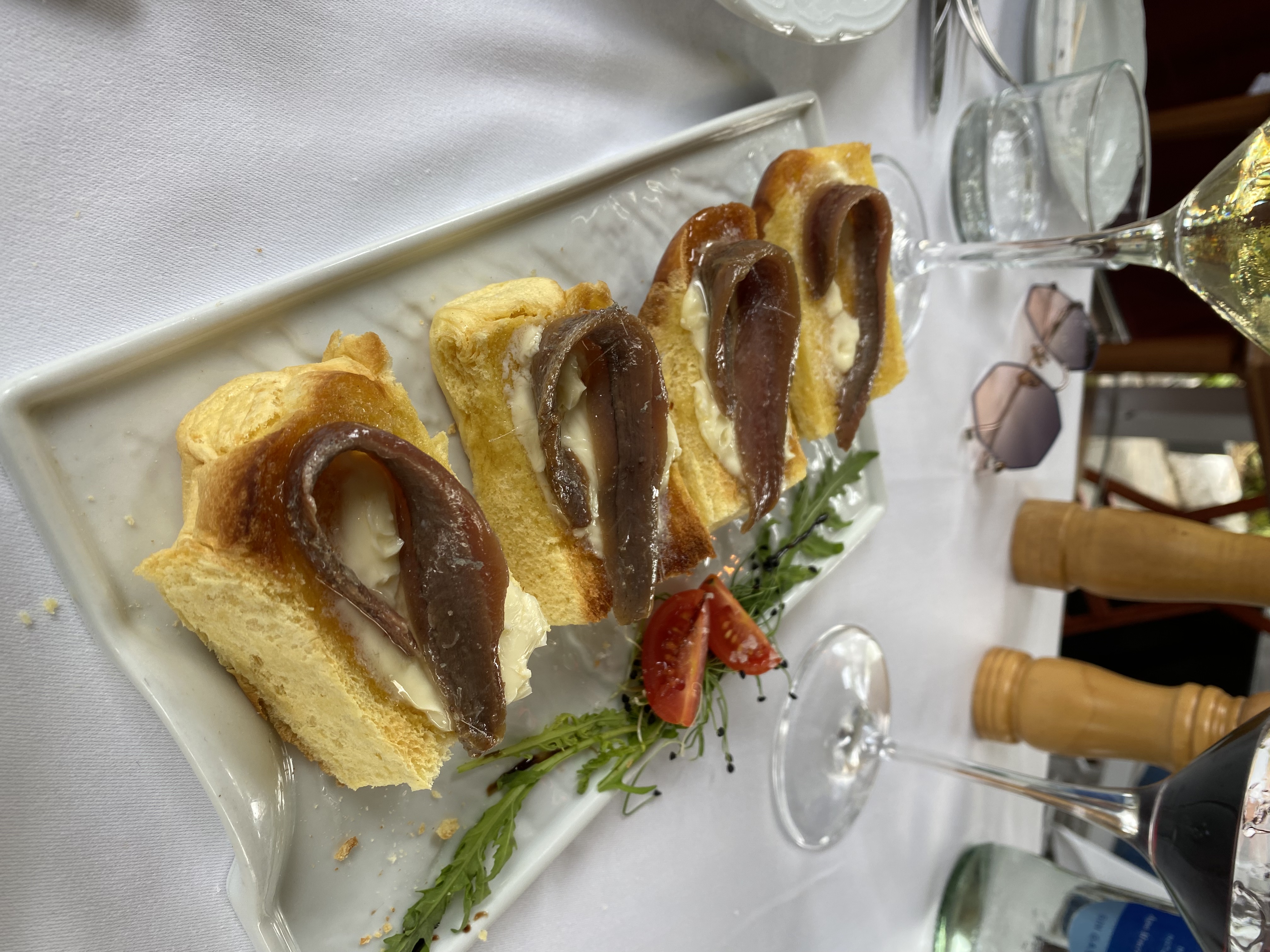 potente bocado de pan brioche con anchoa sobre mantequilla