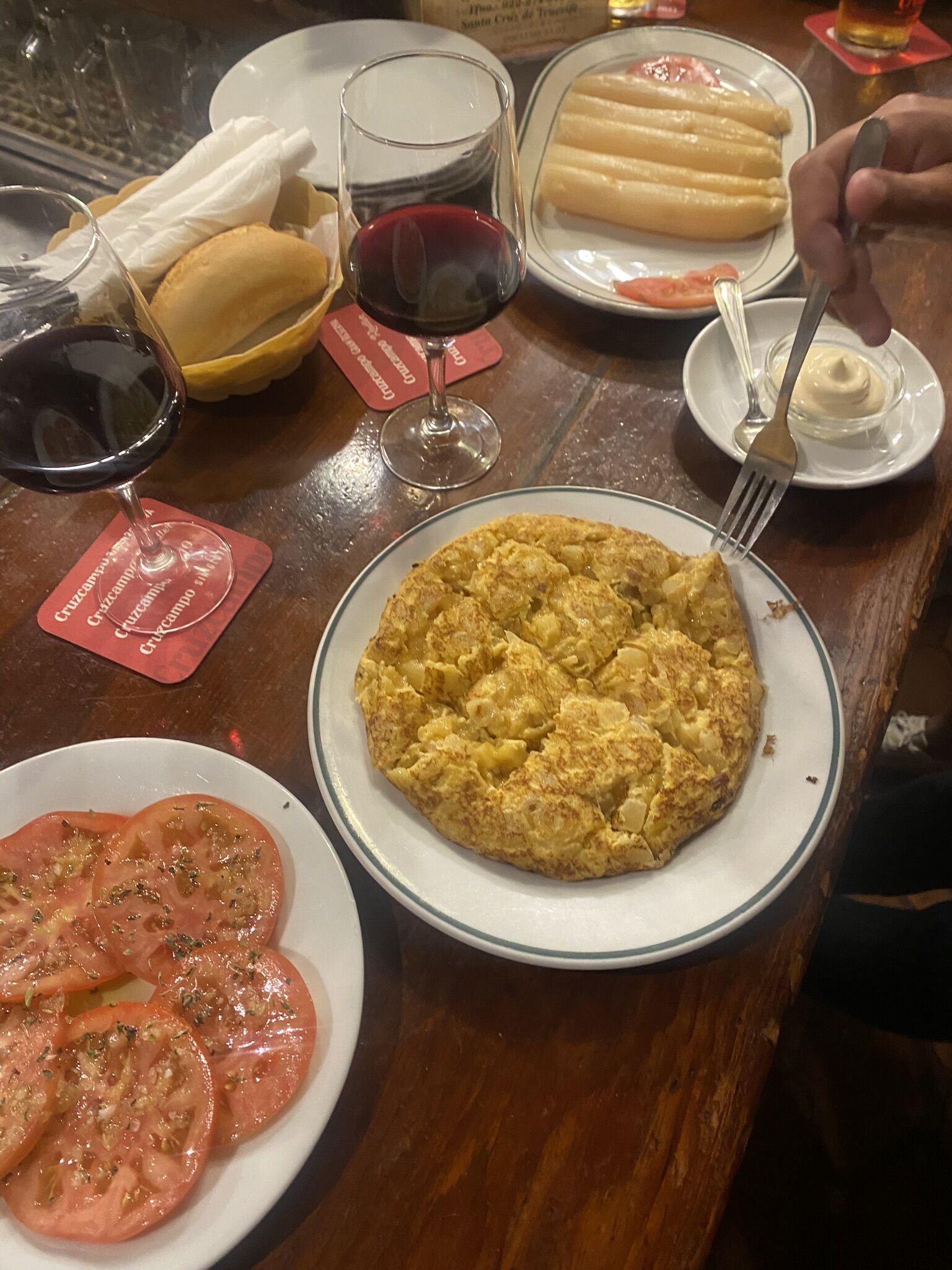 la combinación perfecta: tortilla, espárragos y tomates