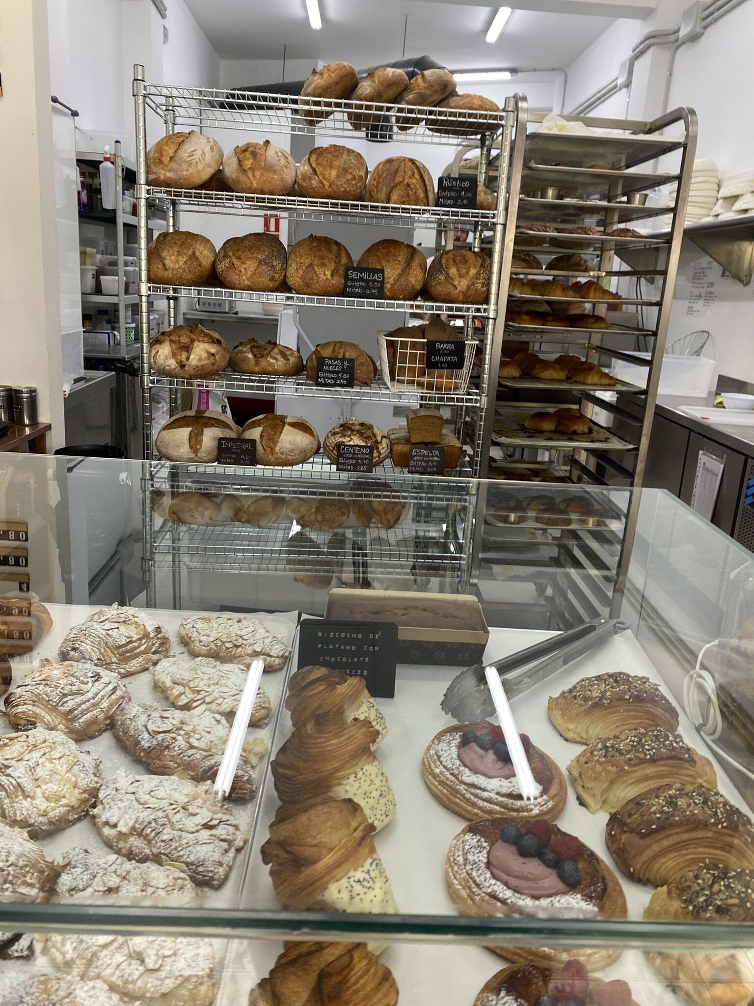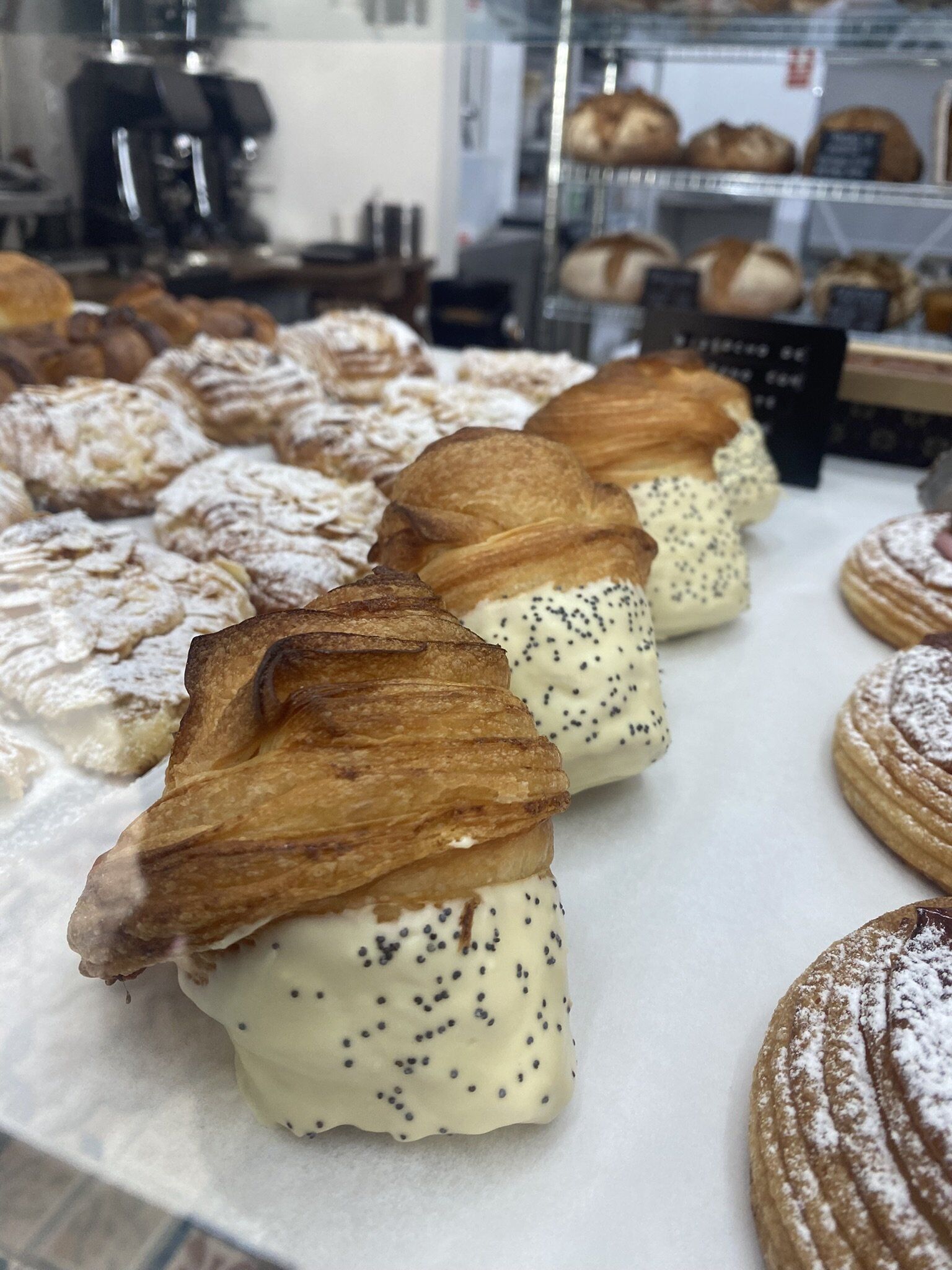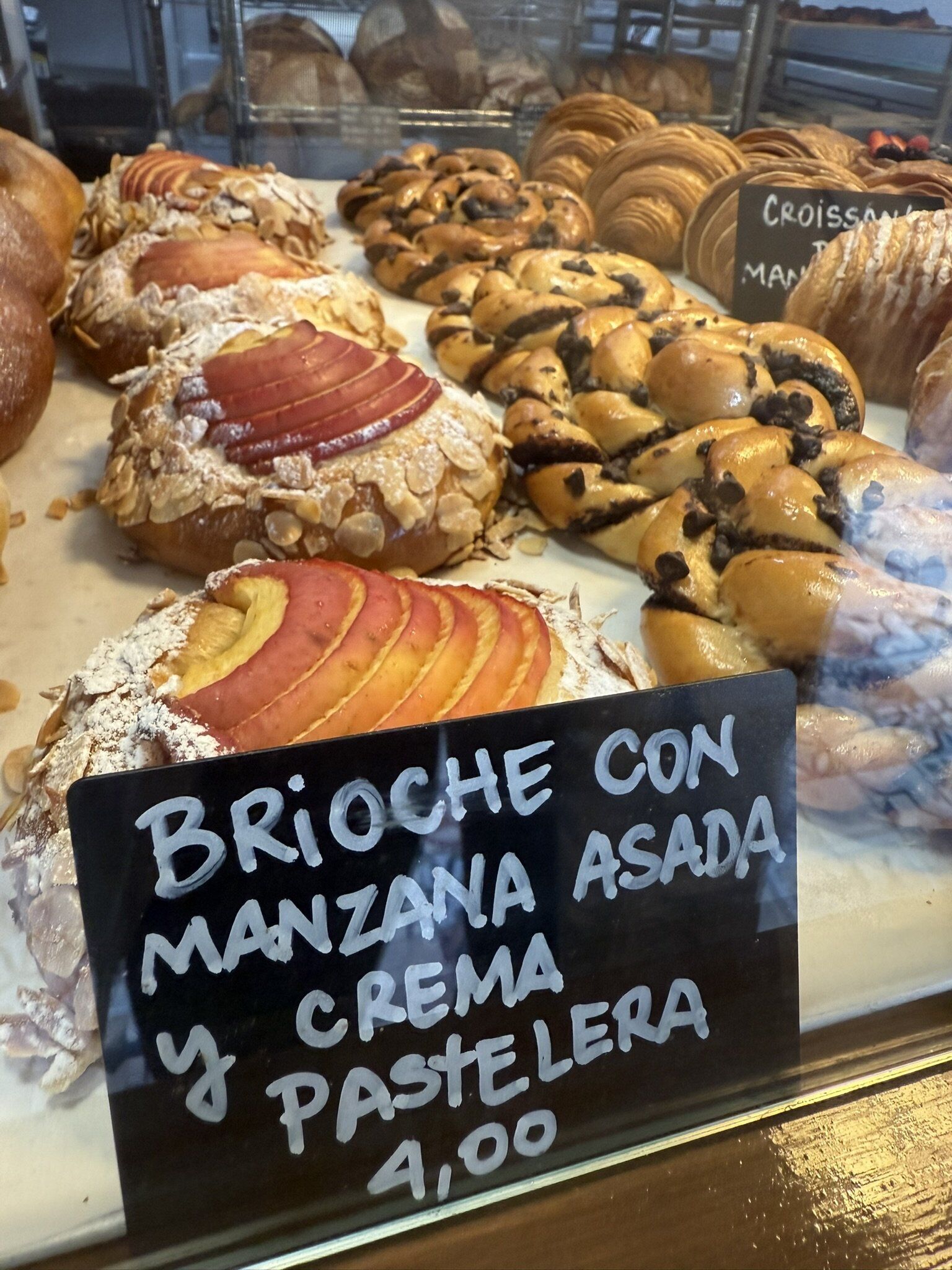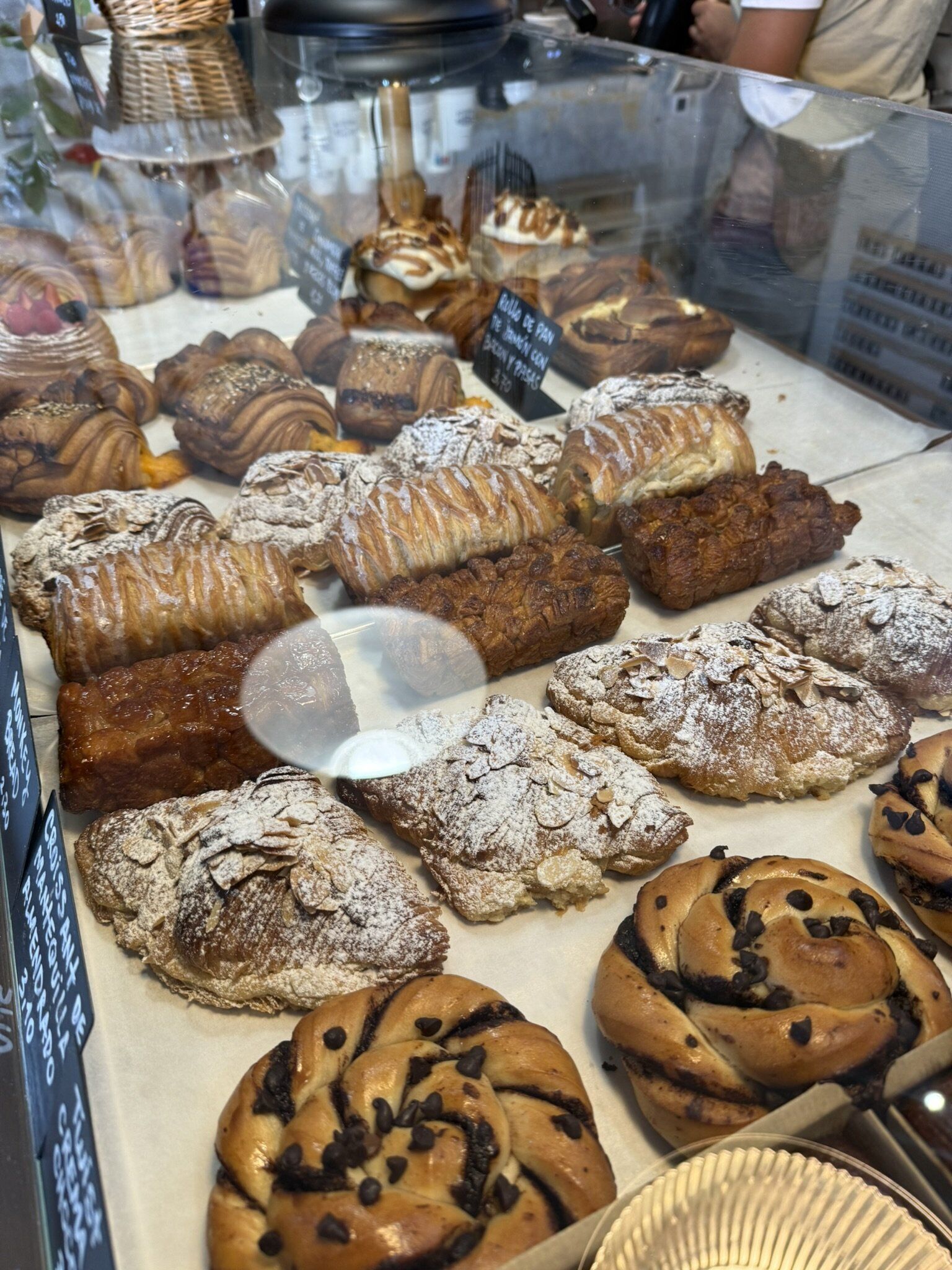 la espectacular vitrina_ croissants de almendras, monkey breads, cinnamon rolls...
