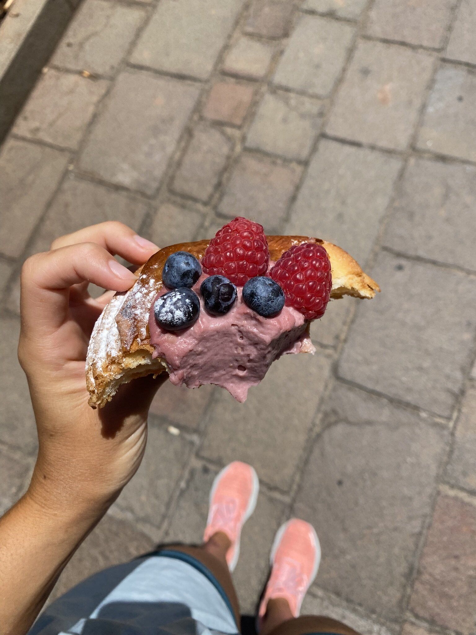 danesa de yogur de frambuesa con fresa y arándanos