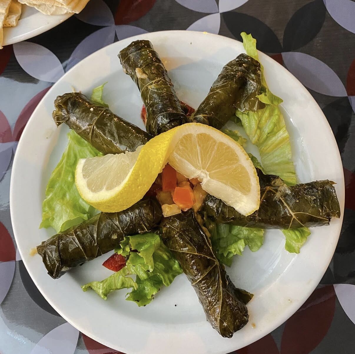 warak inab: hojas de viña rellenas de arroz, tomate, perejil y cebolla a la oliva
