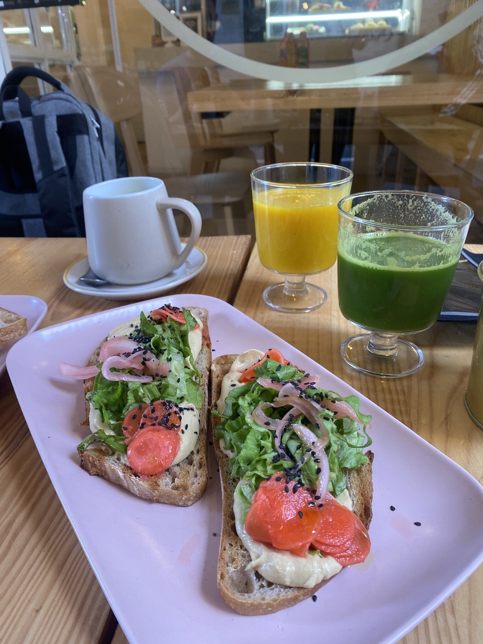 tosta de hummus y cebollino encurtido